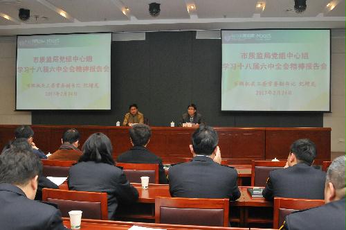 2月24日我局在河西质监大厦四楼会议室举行学习贯彻党的十八届六中全会精神宣讲报告会。会议邀请了中共南京市委市级机关工委常务副书记纪增龙讲课。市局中心组成员及市局机关、稽查分局全体党员,各分局、直属事业单位领导班子人员各党总支、党支部书记、副书记、委员共计162名党员参加了报告会。 会上纪增龙副书记以理论联系实际为大家讲解了习近平总书记核心地位的重大意义,解读了《关于新形势下党内政治生活的若干准则》及《中国共产党党内监督条例》。同时他提出推进机关党建全面提升关键在配强党务干部、建强党支部;重点在严格组织生活、严肃政治生活;高度重视机关党员干部的全面发展。整个宣讲深入浅出、生动形象,为我局党员干部们上了一堂精彩课程。 |